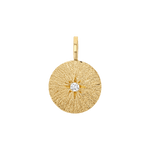 Introducing our Glimmer Birthstone Charm, an incredibly stylish combination of a classic birthstone and a modern disc charm. This 14k Textured Gold with an expertly set center stone, lends itself to the perfect piece to commemorate a special birth. Each stone is beautifully Star-set in the center. Wearing your birthstone is thought to bring wellness and good fortune.