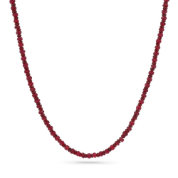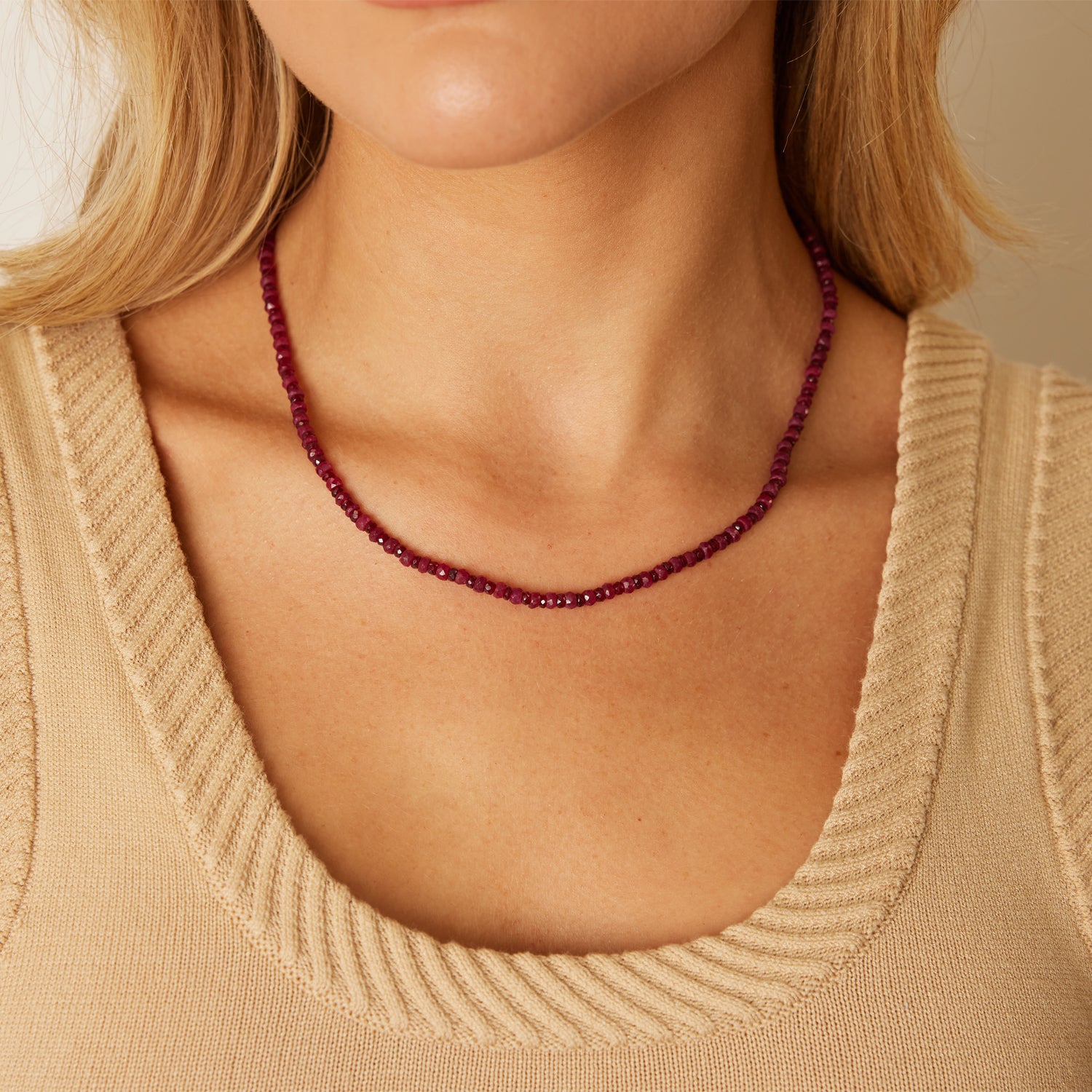 Known to symbolize health, wealth and wisdom our stunning Ruby Bead Necklace features opulent cut Rubies vibrant in shine and rich in their natural Ruby tone. A chic and timeless staple they garner a beautiful marriage of spiritual symbolism and style. Wear them alone or layer with your favorite BabyGold chains!