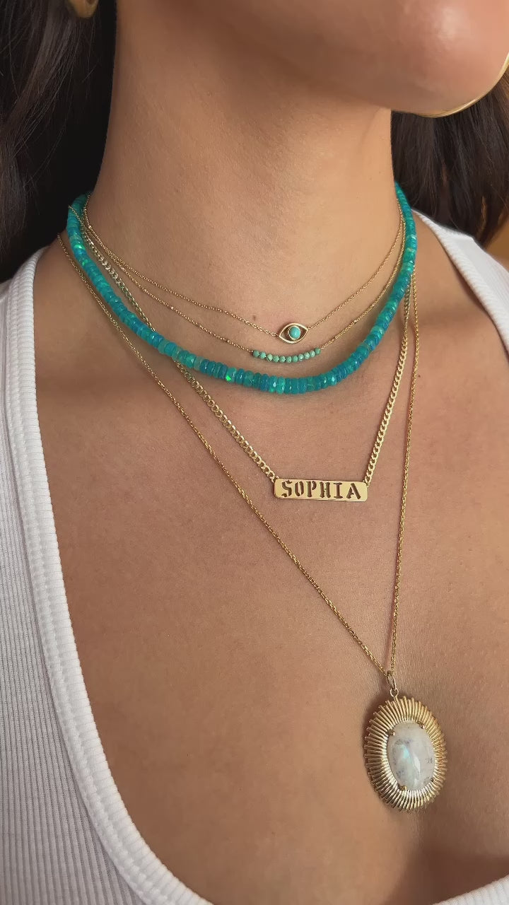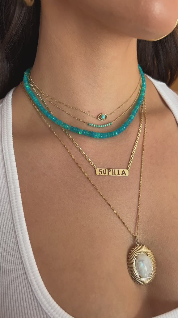 These stunning Paraiba Opals are here just in time for summer. The vibrant ocean blue stones pair beautifully with any of our gold necklaces. Whether part of a stack or worn as a minimal solo statement, they will surely emulate an effortless chic vibe. Perfect from beach to resort evening looks. The best part, the necklace fits most of our charms, not to mention our connectors.
