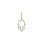 Introducing this sparkly chic counterpart to our solid hamsa charm. This diamond clad protective piece will be the newest treasure on your neck stack. Combining the glam of diamonds with protective vibes will surely be a combination that will win your heart and complete your chain game.