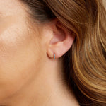 These turquoise collection dainty huggies are perfect for everyday wear. Set with 1mm turquoise stones.