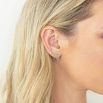 Great casual and cute earrings for everyday wear. I currently have them in my first hole and pair them with diamond studs in my second holes. But they are petite and hug my lobe tightly so they would be perfect for paring with a larger earring.