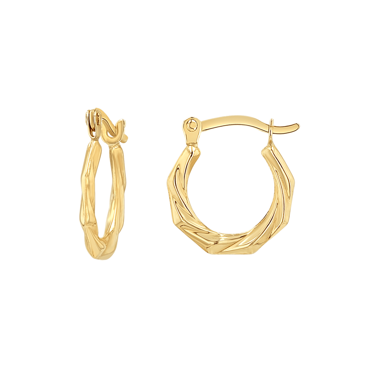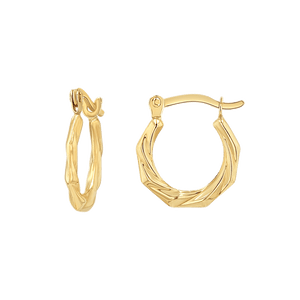 Tiny in size but mighty in style these versatile Hex Hoops are the perfect stacking piece you will want to leave on all day long. With our perfectly textured diamond cut design these are the everyday pair you've been dreaming of, with all the sparkle to make you shine!
