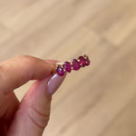 Signifying passion, protection and wealth these iconic pear shaped Rubies add a timeless essence to your ring stack. A design that is iconic and comfortable our half eternity band boasts a brilliant rich red hue and a striking silhouette with 3.0cts of natural Ruby stones. These alternating pear shapes are our newest and more daring addition to our eternity collection. A cherished piece that will live in your collection forever.