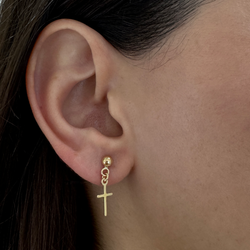 Meet your new go-to earrings with timeless appeal, the Classic Cross Drop Earrings. Perfectly sized and crafted in 14K Gold they feature a polished gold sphere stud and a delicate dangling cross. These protective earrings blend minimalist design with symbolic elegance. Perfect for everyday wear, our Classic Cross Drop Earrings earrings add a subtle yet meaningful touch to any look. Whether you’re stacking a statement  up or keeping it minimal our Classic Cross Drop Earrings are a chic and versatile addition to your collection.