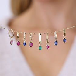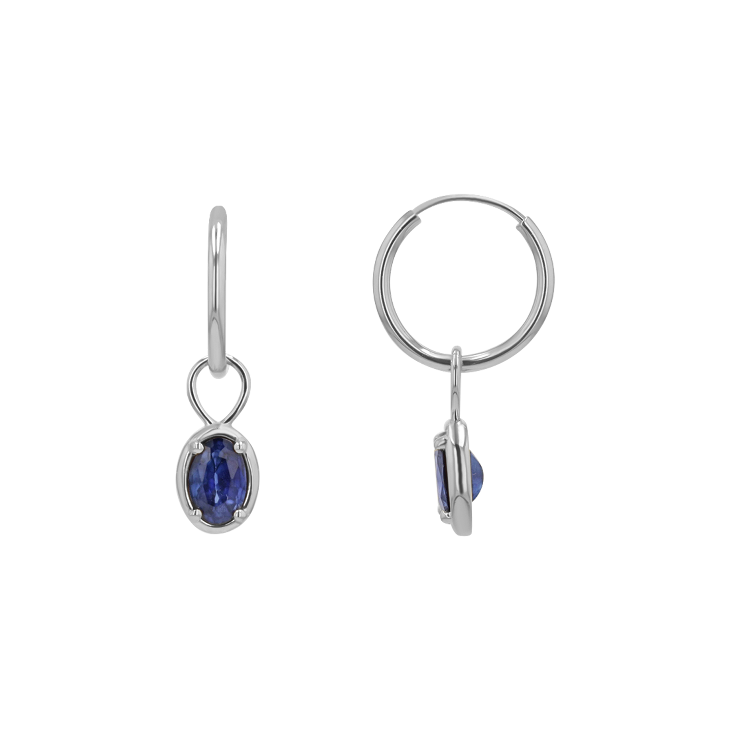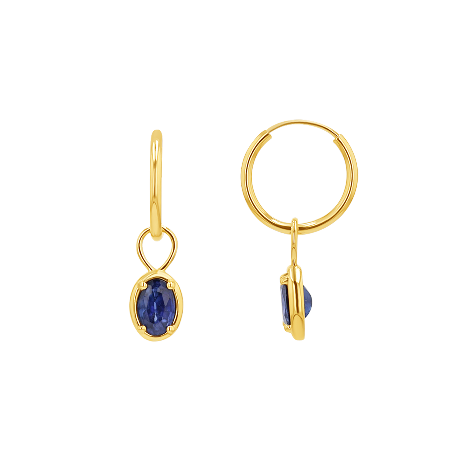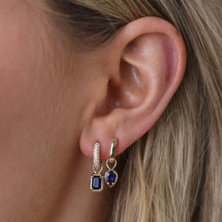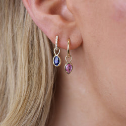 Our new huggie charm collection gives you the option of transforming your huggies as you please! A brilliant oval cut sapphire gemstone wrapped in a soft classic oval silhouette design can be seamlessly draped from a 14K basic huggie or hoop. The Oval Huggie Charms are crafted with precision and for ease of wear allowing you to effortlessly add or remove them, providing many possibilities for customization. Perfect for adding a pop of color whether it's a casual daytime look or a glamorous evening affair, available in a multitude of brilliant gemstone colors they are versatility and elegance rolled into one chic pair!