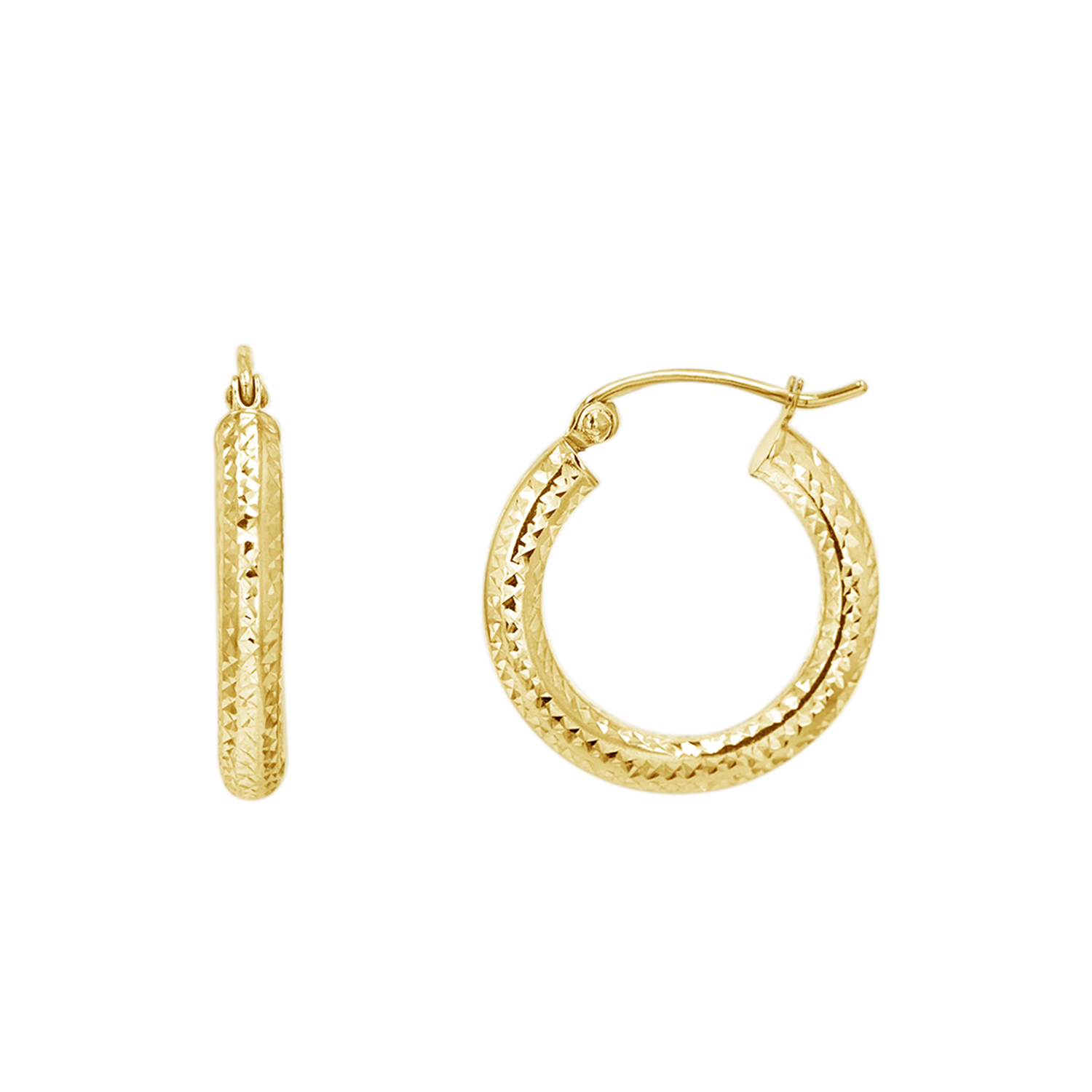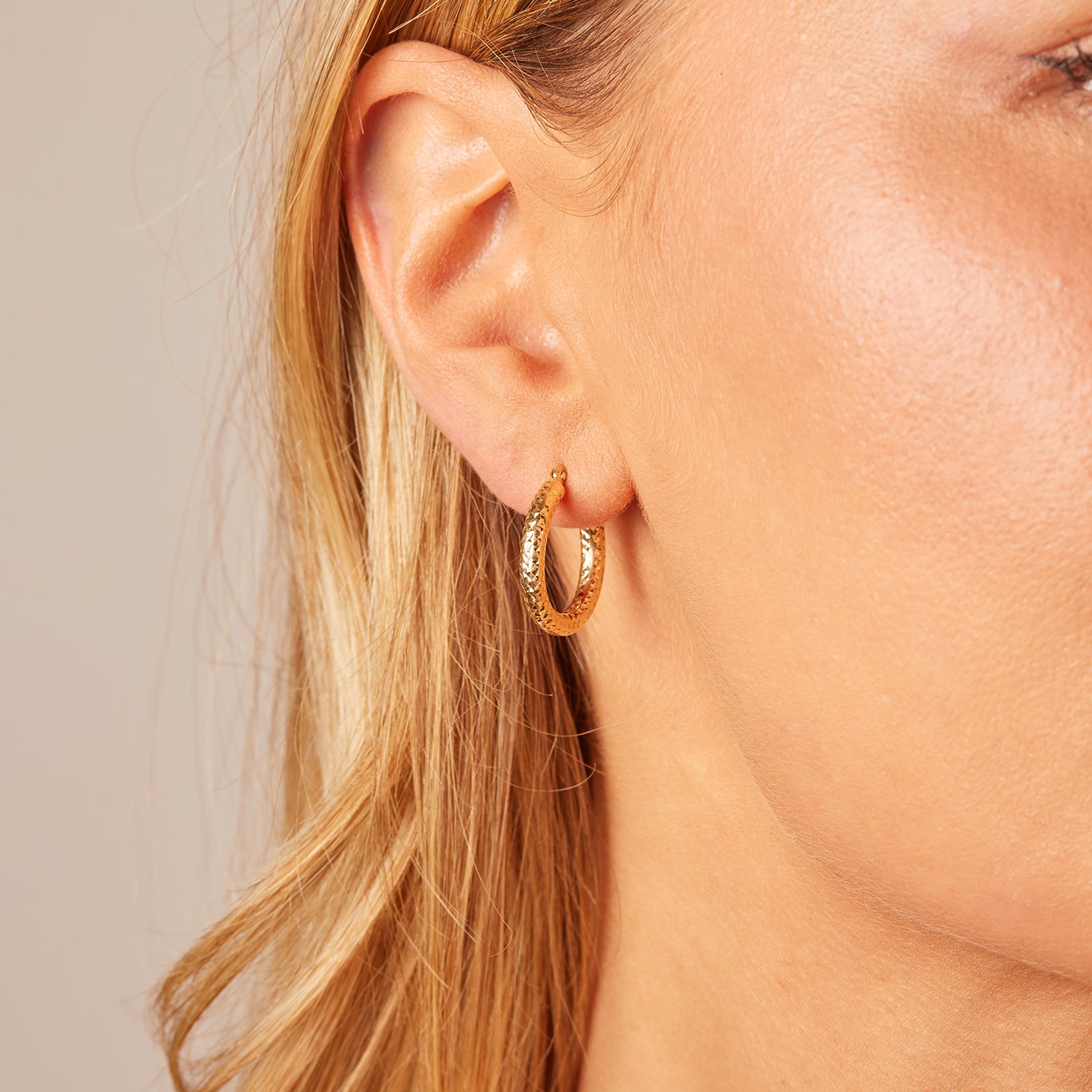 If you're looking for understated glam wrapped up in a all day-everyday essential, then you've found the perfect hoops! Our Ziggy Gold Hoops are THE must have for every look. These hoops will never lose their diamond cut luster. The perfect size and width for main character energy or layering with larger pieces. Always 14K Gold!