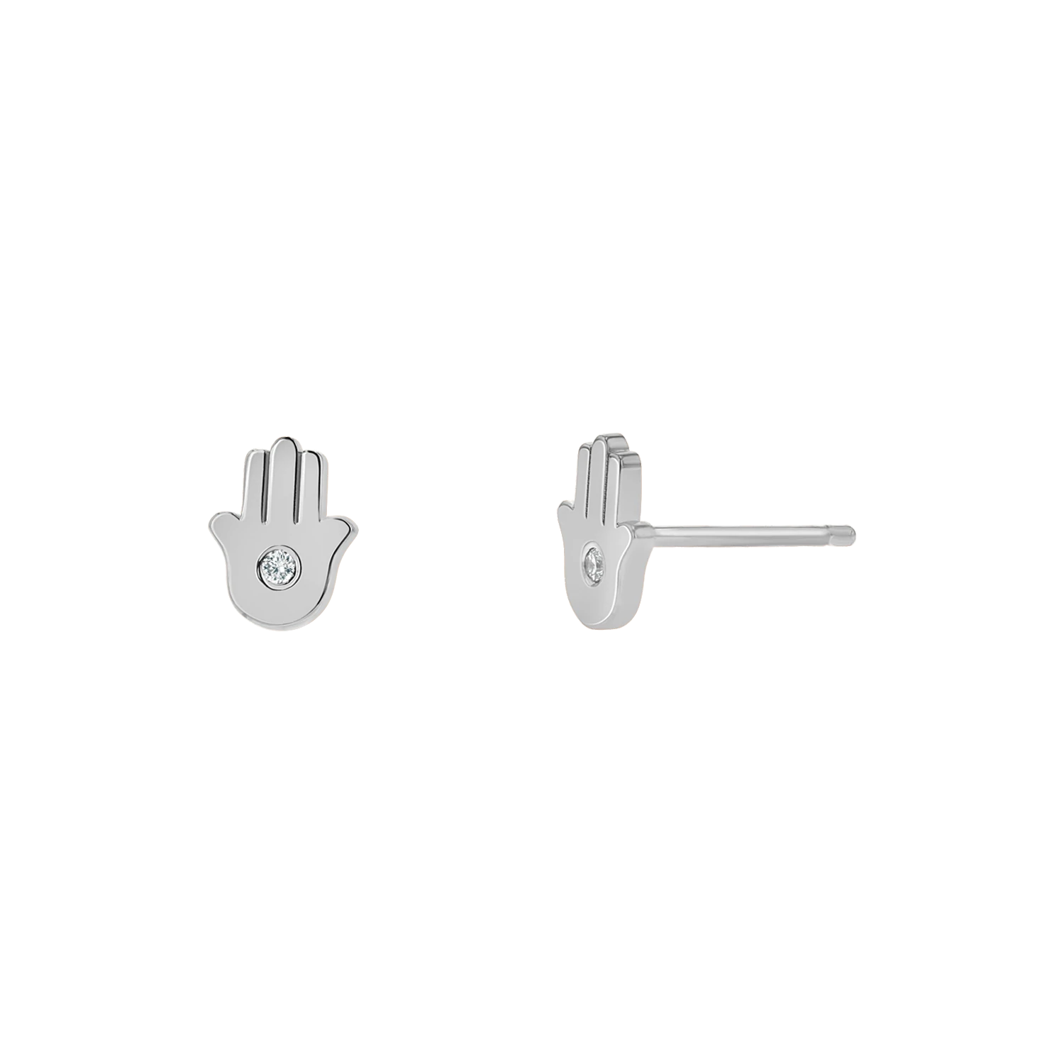 These beautiful Hamsa studs with diamond center stones will sparkle and shine while surrounding your little one with positive vibes all day long. The perfect size for daily wear, these 14K protective earrings will be treasured for years to come.
