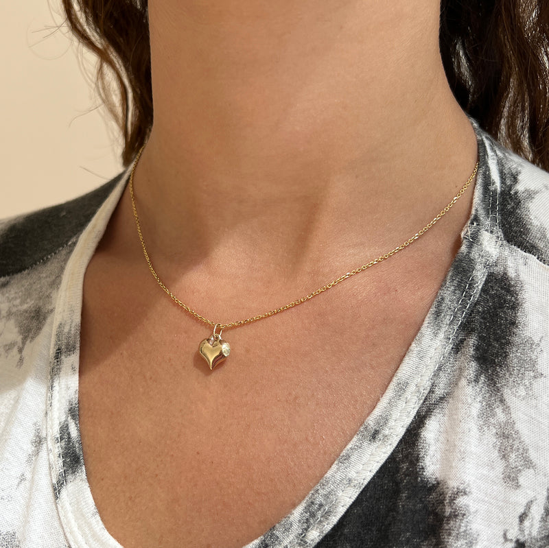 Low and behold the cutest Babygold charm yet! This Puff Heart Charm is a bubble of love that sparkles as big as your heart! A high polish lightweight piece that can stand alone of mix with other custom items! A collection staple that you will cherish forever!