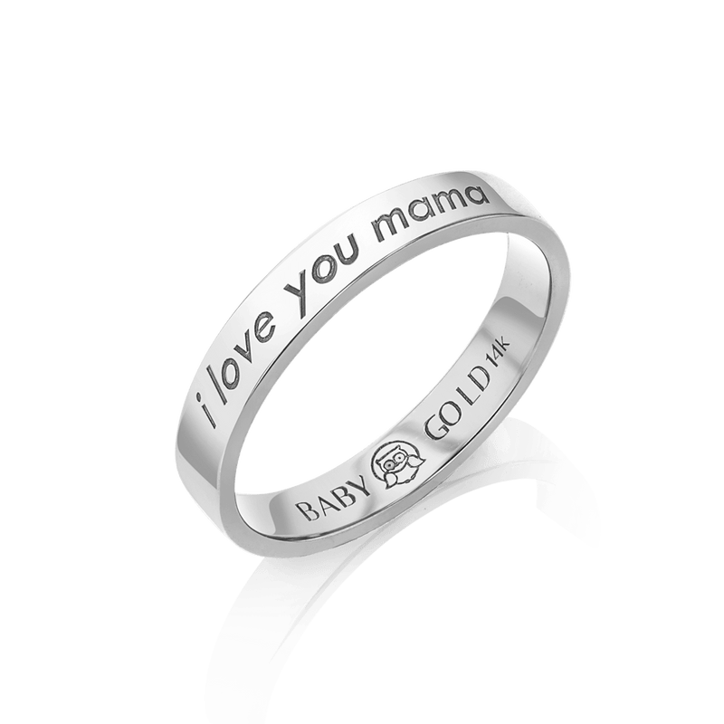 This 14kt solid gold ring is engraved with the words "i love you mama" with an option for a custom engraving inside. Wear your mama title with pride or gift the special mama's in your life with this unique ring.