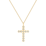 Our Grand Diamond Bezel Cross Necklace is hand set with approximately 0.60cts of natural high quality diamonds. This cherished symbol hangs vertically from a delicate chain and can be kept close to your heart at all times.