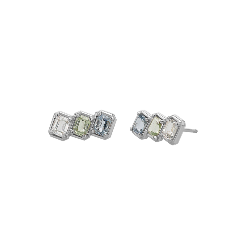 Emerald Cut Blue Ombré Trio Sapphire Earrings