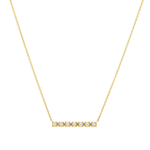 Edgy with a sweet twist, this 14K Gold Pearl Bar Necklace is a classic forever piece that is a jewelry collection essential. Hand paved, it is anchored on our classic cable chain and adorned with a row of seven natural freshwater pearls. Lightweight and perfectly sized for everyday wear. Stacks beautifully with our Dainty Pearl Necklace.