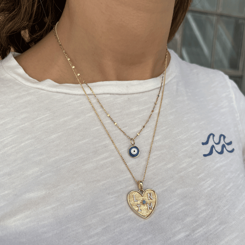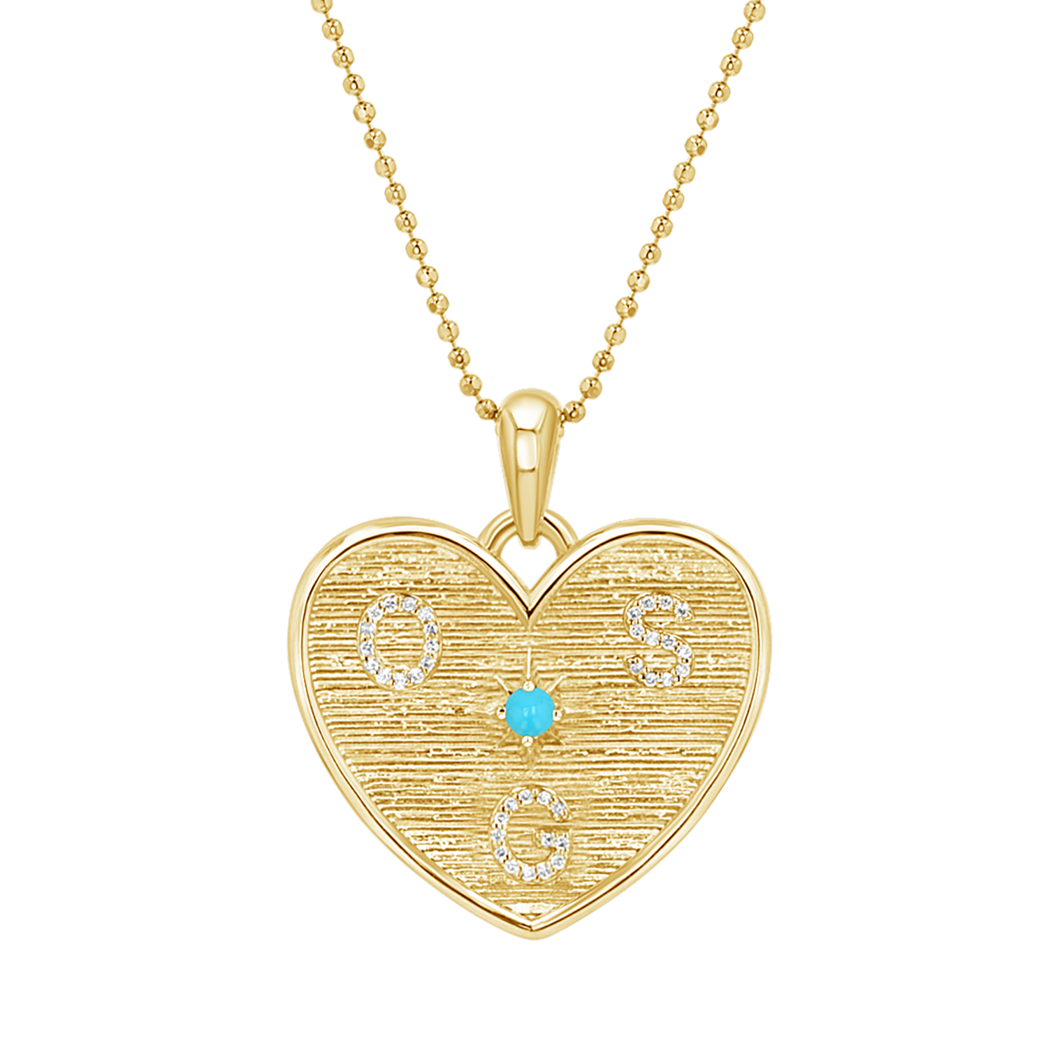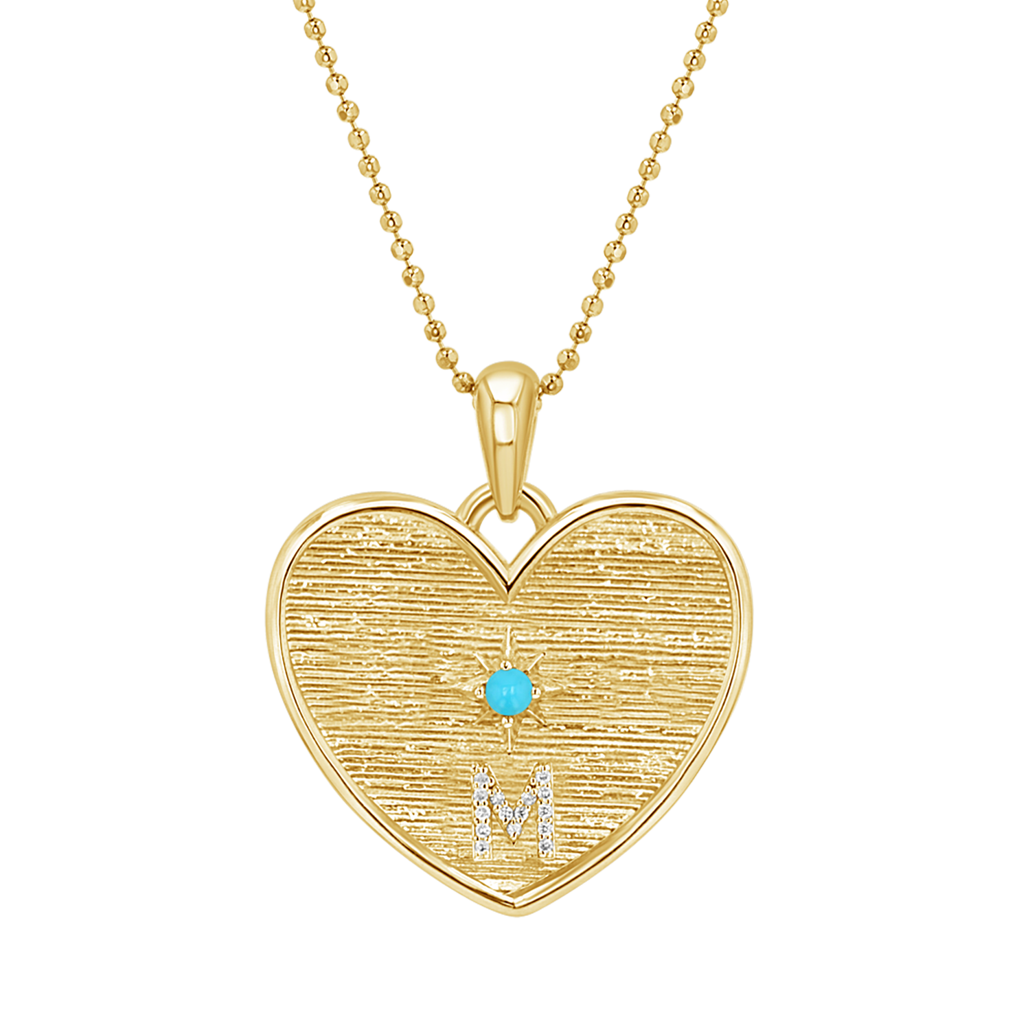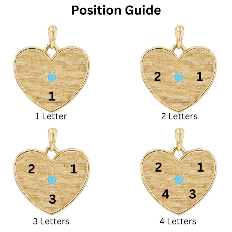 The Heart of Mine Necklace is the Holy Grail of all custom initial Medallions. Designed and created to bring a fully customizable piece to your collection. The Deco textured background creates the perfect canvas for the pop of turquoise. Available in solid or 1-4 initial options. Put all your loved ones on a Medallion and protect them with the healing powers of turquoise.
