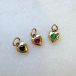 The sweetest little charms you will LOVE to wear and stack! Available in Emerald, Blue Sapphire, Pink Sapphire, and Ruby. They are a dainty way to carry love all day! Crafted in 14K Gold they are a perfect add-on to our dainty chains and charm connectors for a layered look or a solo minimal statement.