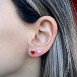 The handcrafted Petit Heart Enamel Earrings are available in various colors and sizes. This playful design adds color and fun to your day!
