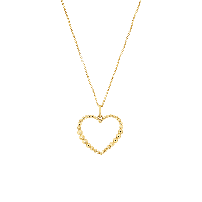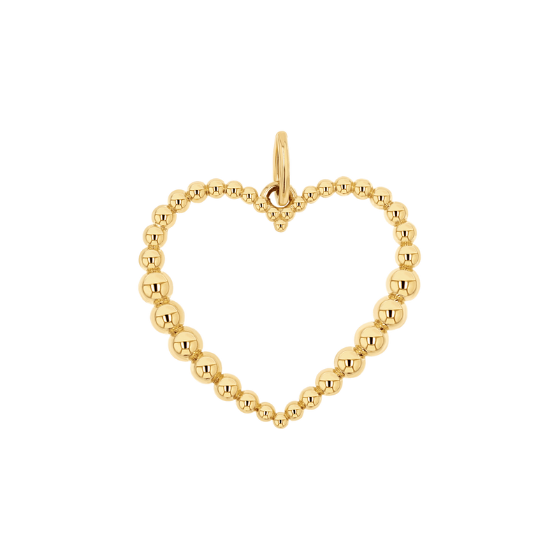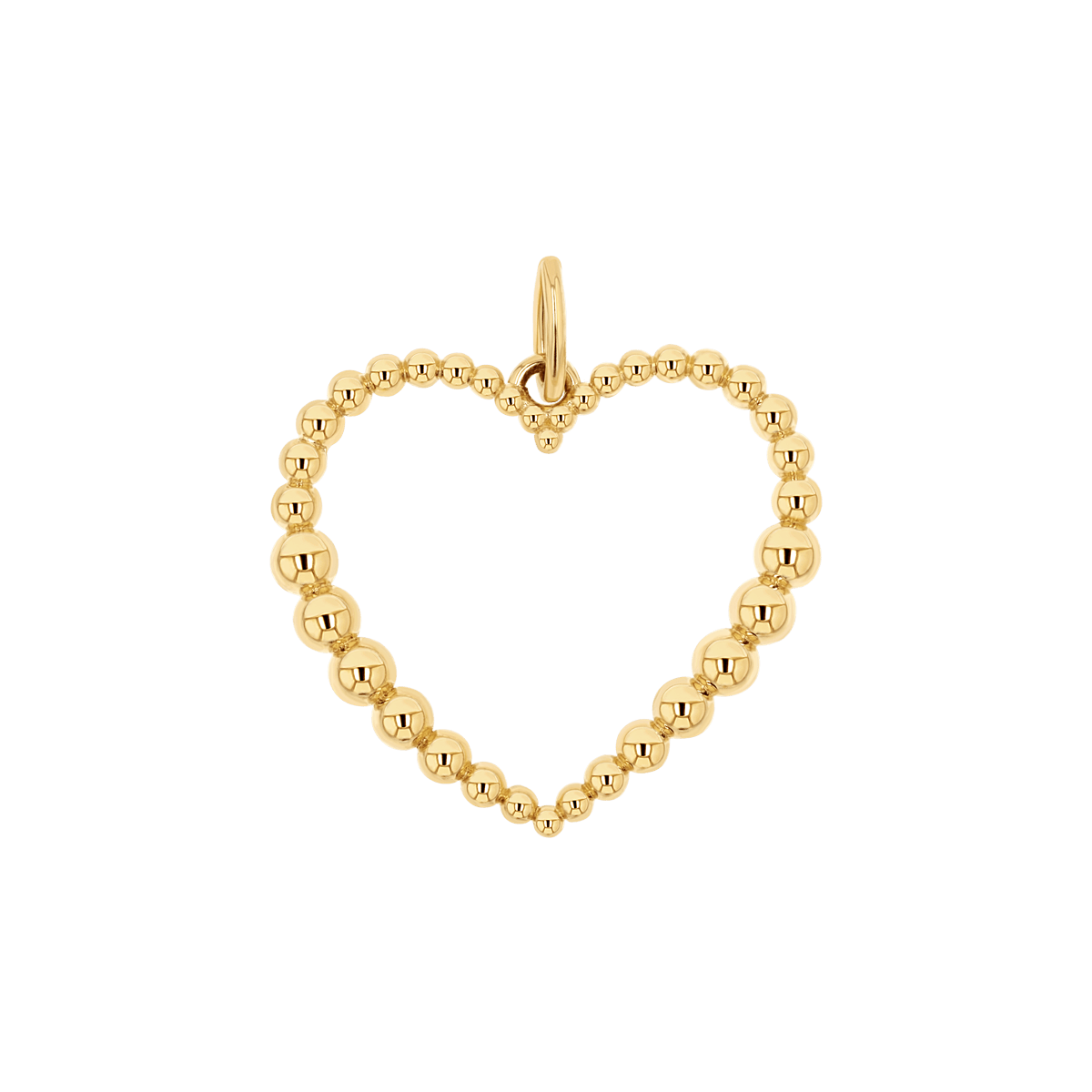 This sweet Beaded Heart Charm is a classic way to wear love close to your heart at all times. Tapered high polish beads give the modern and stylish look you crave to this cherished symbol. Wear alone or stack with your BABYGOLD favorites.