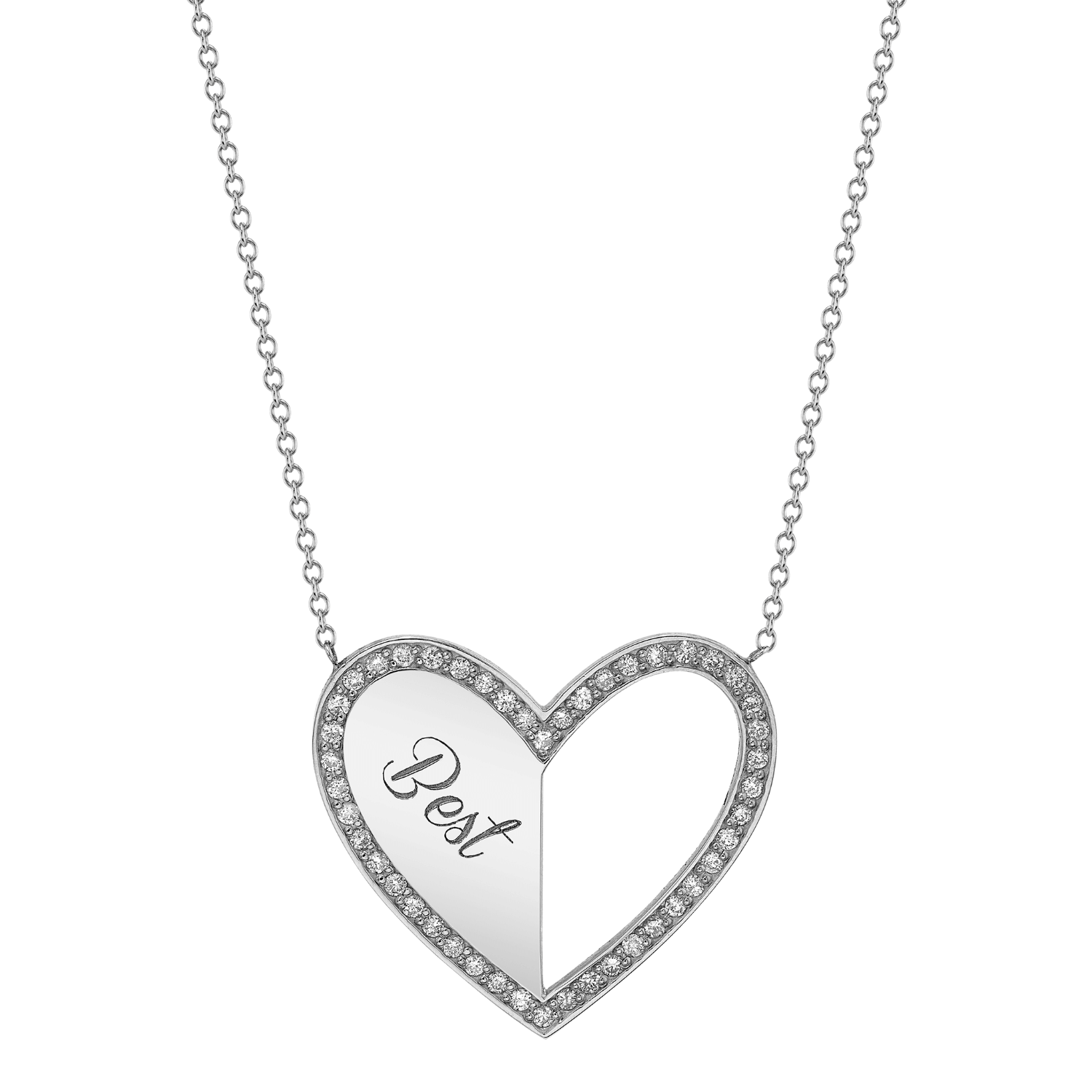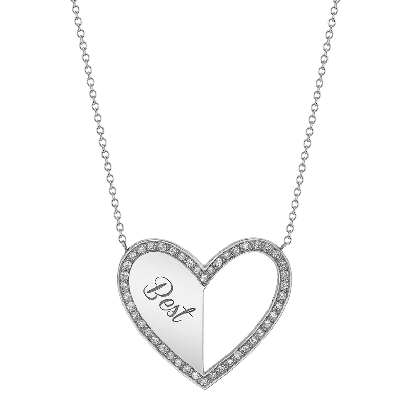 The Best Friend Heart Necklaces are a set of 2 set with approximately 0.20cts each. This childhood favorite has gotten an upgrade with solid gold and diamonds and is bound to make a special impression. Wear it with your best friend!