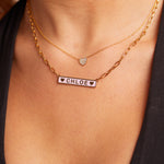 The Moyen Pave Heart Necklace is handset with 0.20cts of diamonds. Wear this classic necklace daily or dress it up.