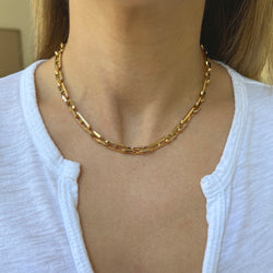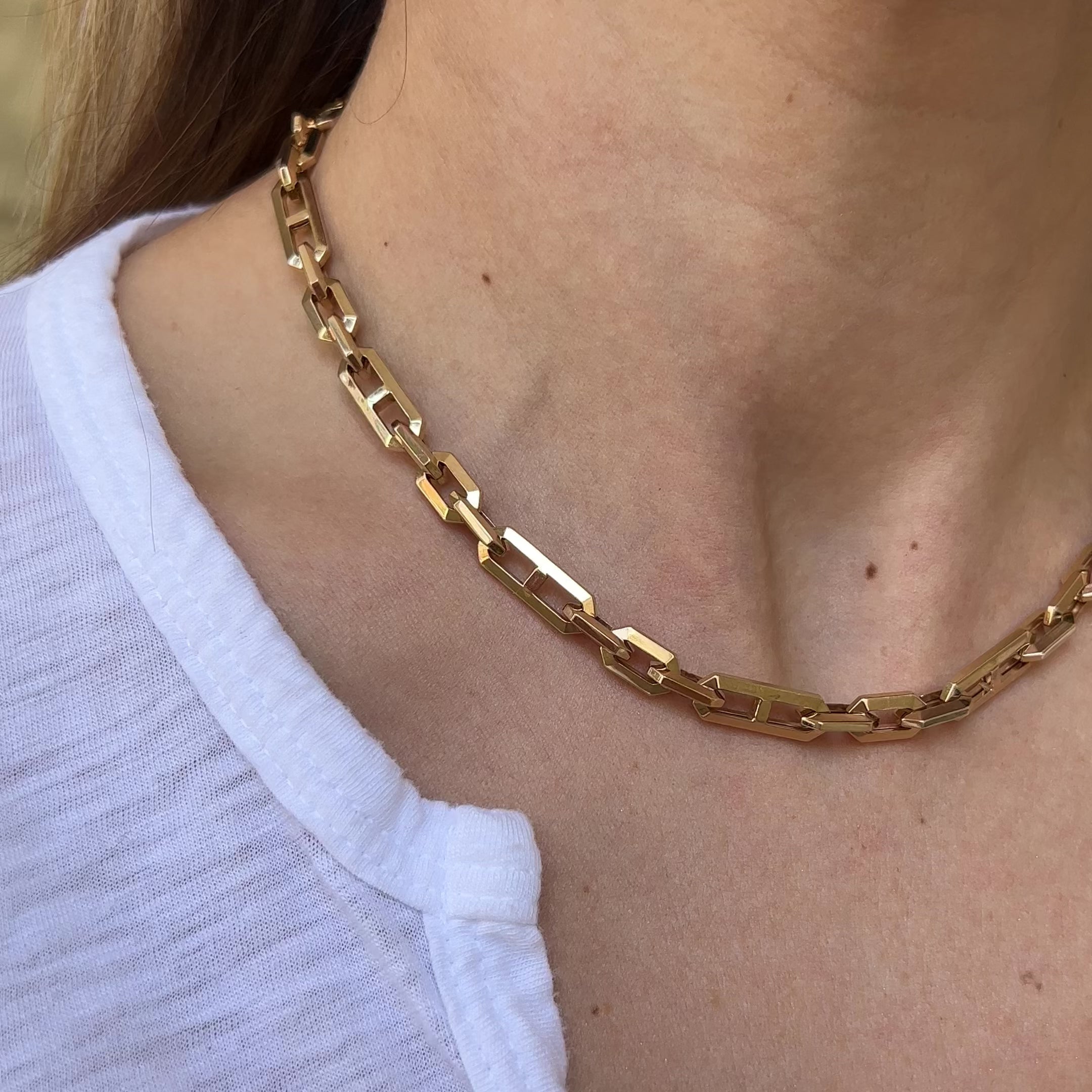 Our unique twist on a link necklace that is luxuriously bold and surely will be your new favorite statement piece. Our Beveled Link Statement Chain Necklace's masterfully faceted links produce stunning sparkle and major 14K Gold shine. Pairs beautifully with our Beveled Link Statement Chain Bracelet and any of your Babygold favorites!