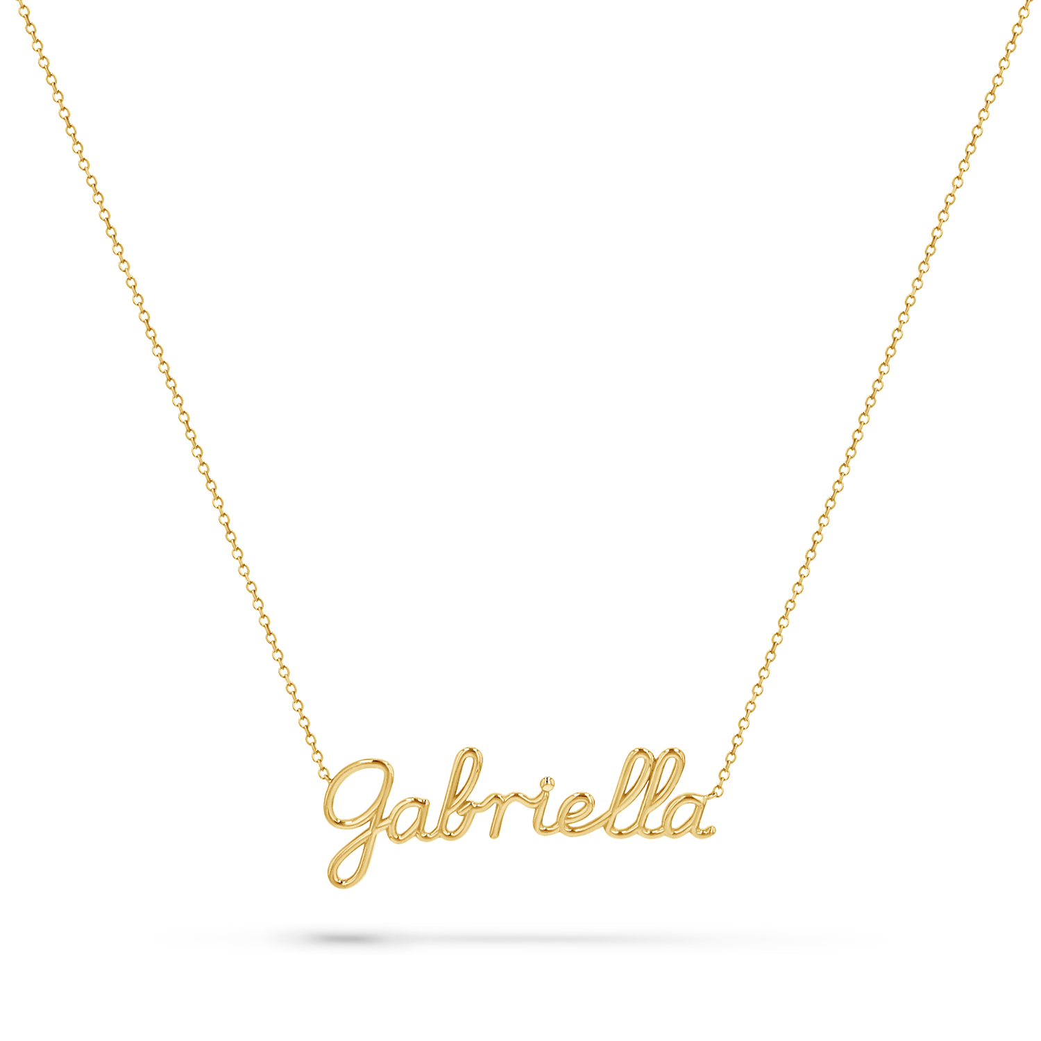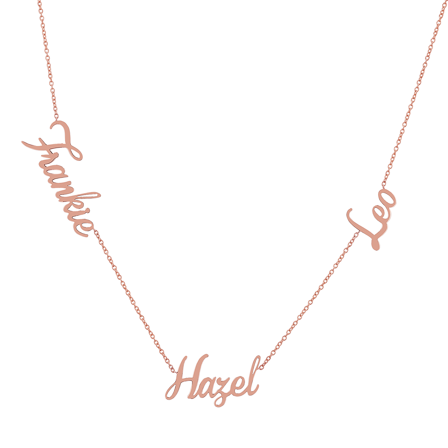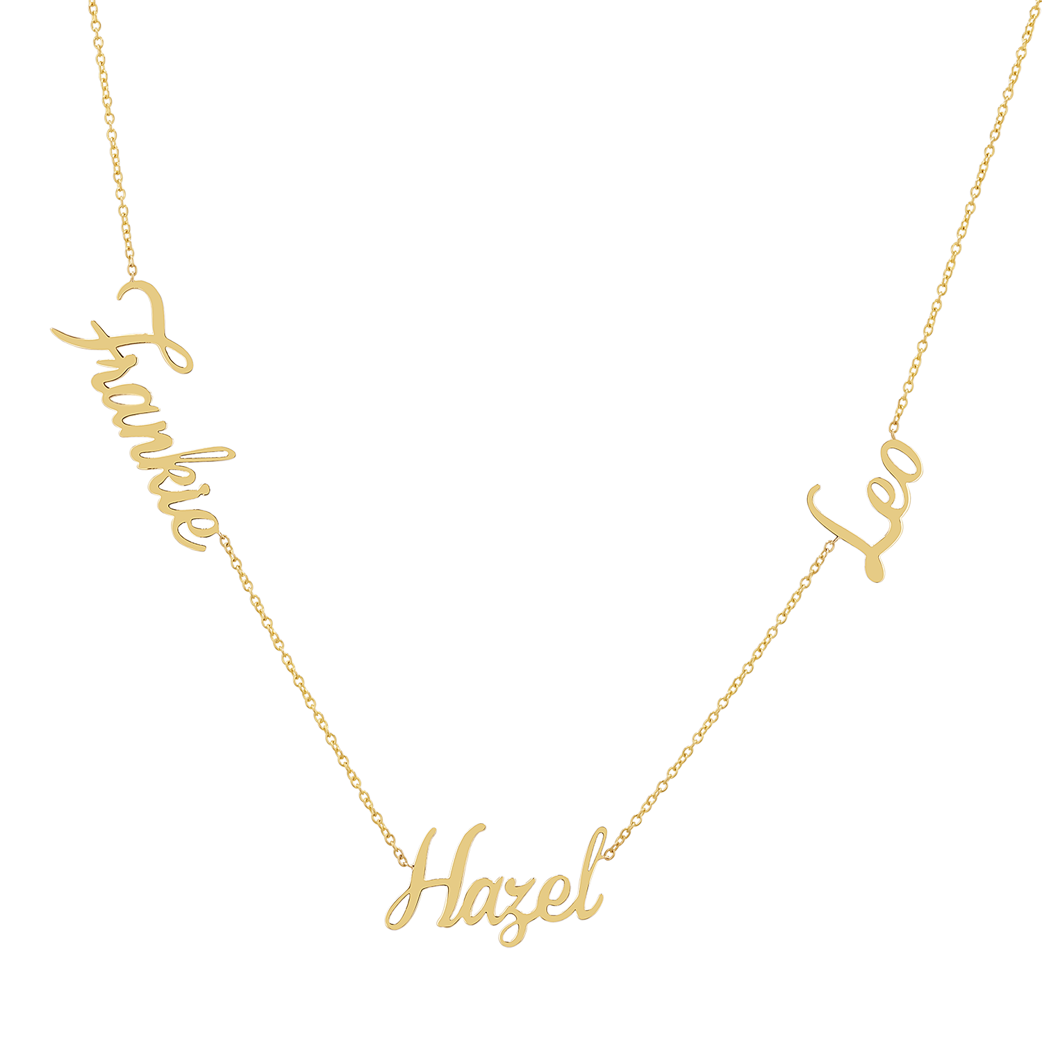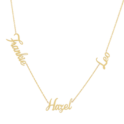 This 14K gold script custom three name necklace is a timeless piece and now you can add 3 names that mean the world to you. Show your love by wearing the names of the ones you cherish all day!
