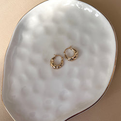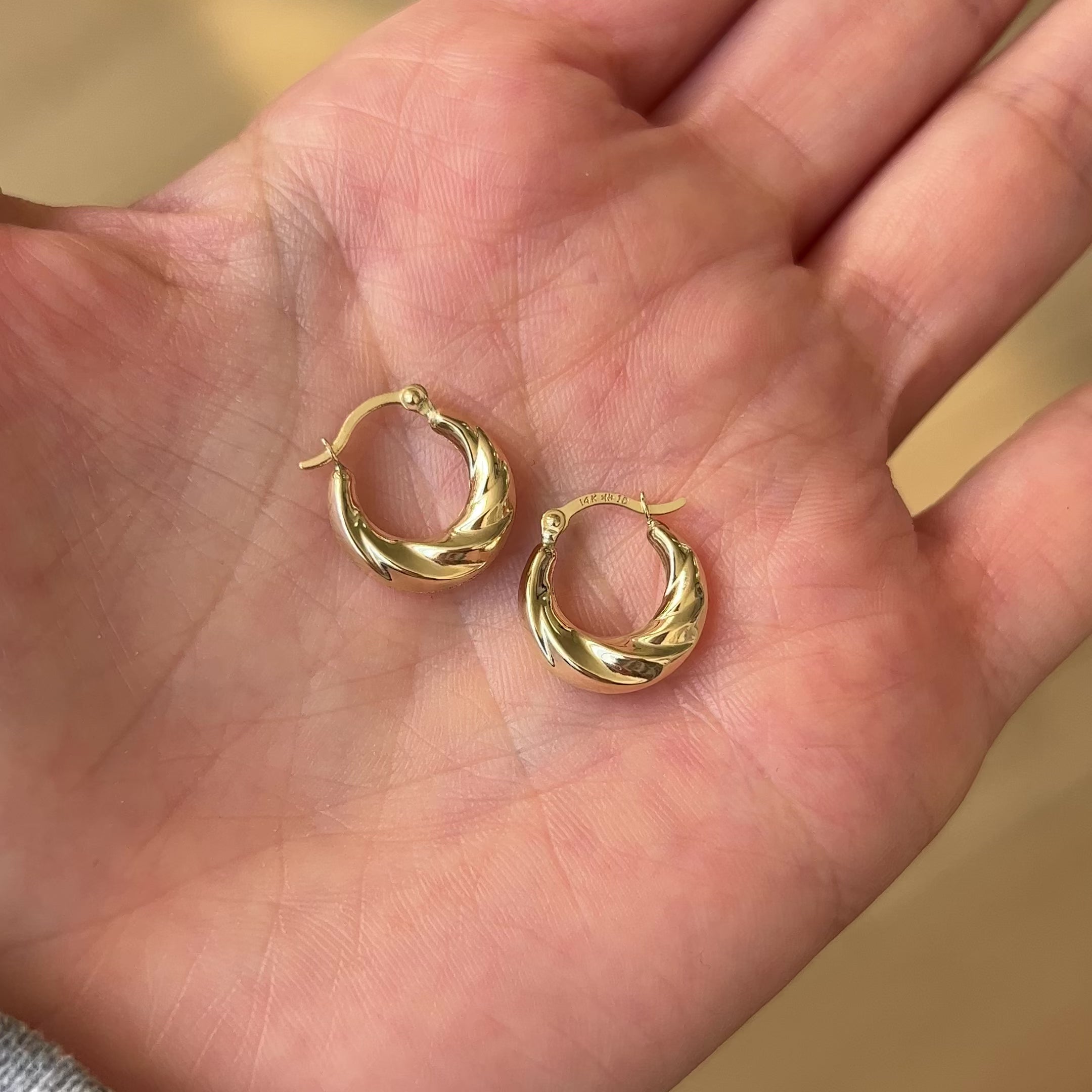 Don't be fooled by the petit demeanor of these adorable Croissant Huggies, these 14K Gold beauties are packed with style and so much texture that they will make any ear stack pop with major impact. Stack with our Large Croissant Hoops for a yummy pair or wear solo for a minimal chic statement.