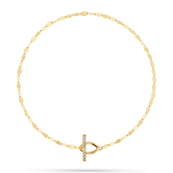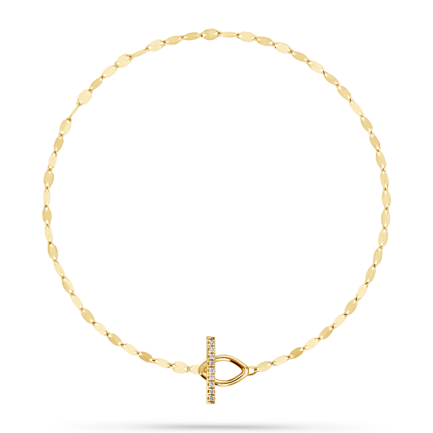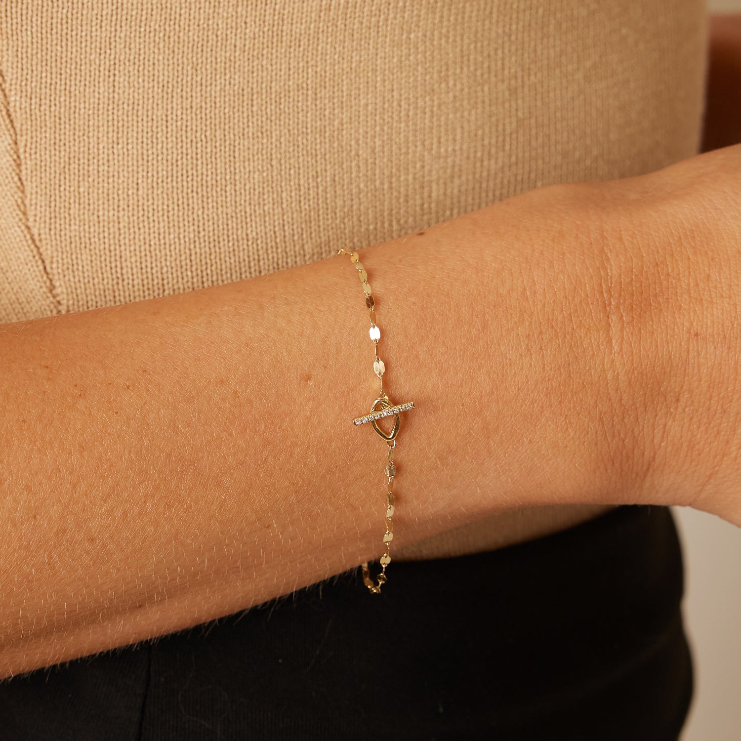 Introducing our Demi Diamond Toggle Bracelet, an effortlessly chic piece crafted for subtle sophistication. Perfect for the modern muse who seeks a timeless yet understated accessory, this delicate bracelet features a sleek, 14K Gold mirror chain paired with a polished toggle clasp adorned with sparkling diamonds. It's designed to catch the light with every movement, adding just the right amount of shine for everyday elegance. Whether worn alone for minimalist allure or layered for a more statement look, this bracelet brings a touch of refined luxury to any wrist stack.