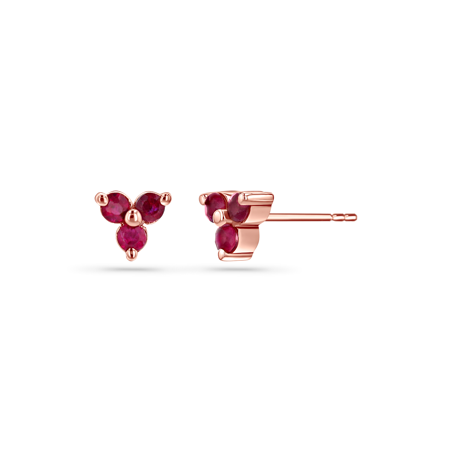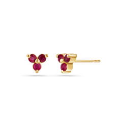 These 14K Trio Ruby Studs are perfect for add a subtle splash of color to your stack. Featuring three rich red rubies set in a playful triangular shape, these 14K gold studs bring a modern twist to classic elegance. Each ruby is prong-set to capture light beautifully, adding a hint of sparkle to your everyday look. A daily wear that you'll never want to take off, they are perfect for stacking or alone.