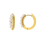 Five perfect pearls adorn this classic 14K Gold Huggie, and add a hint of sophistication and classic style. Dainty and elegant these beauties are a staple for a perfect year round stack. Wear alone for a minimal statement or layered for a perfect pearl pop!