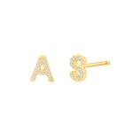 The 14K gold pave letter earrings are handset with approximately 0.10cts of diamonds. These delicate yet bold initial earrings will become your go-to piece. Wear your initial or the initials of someone you love!