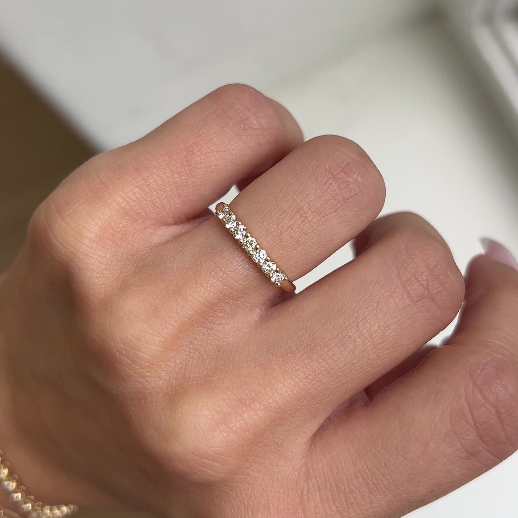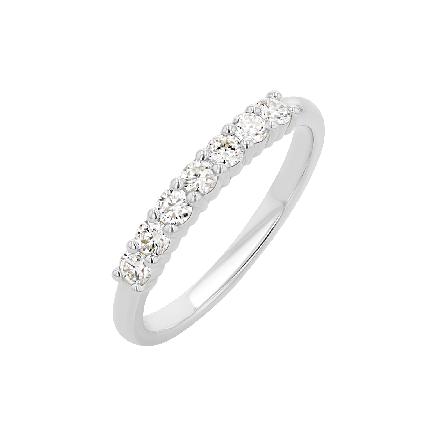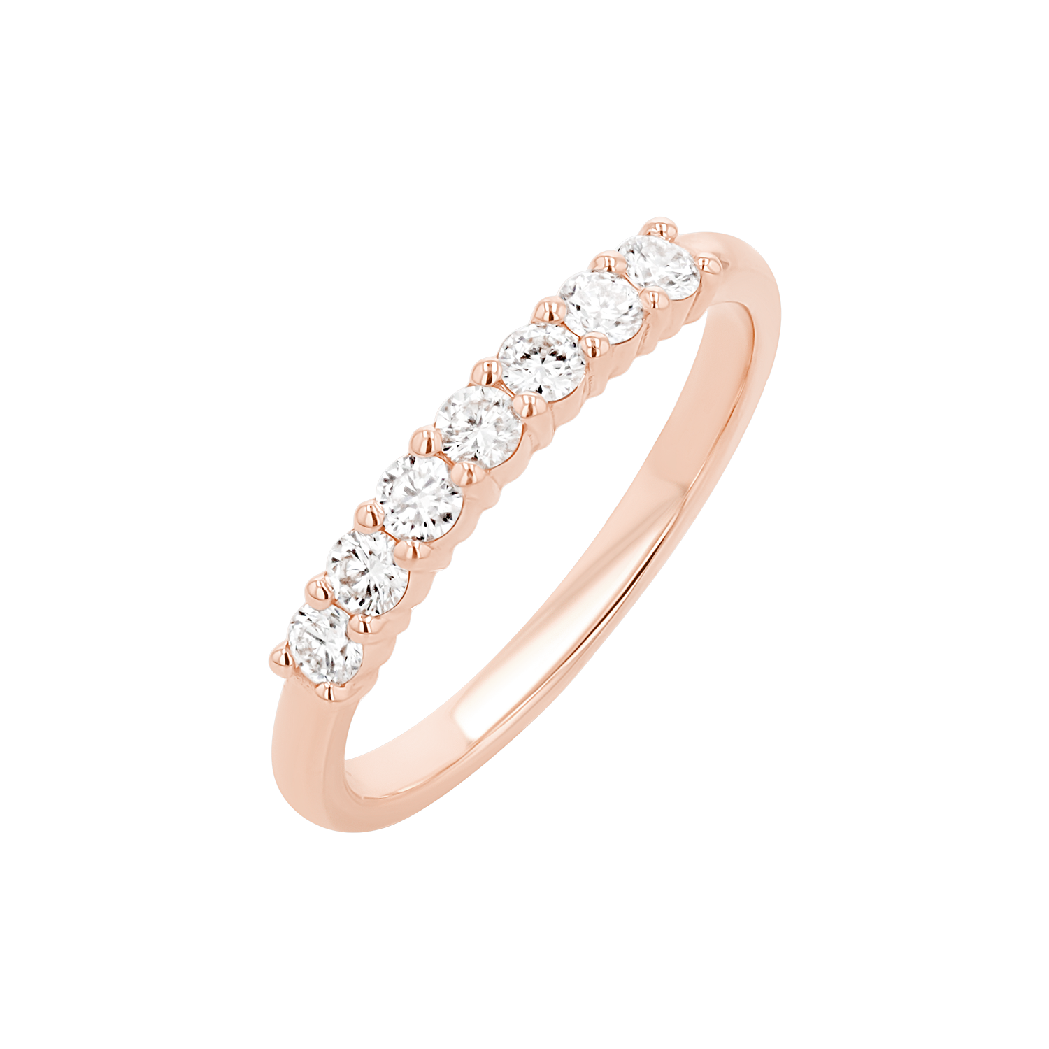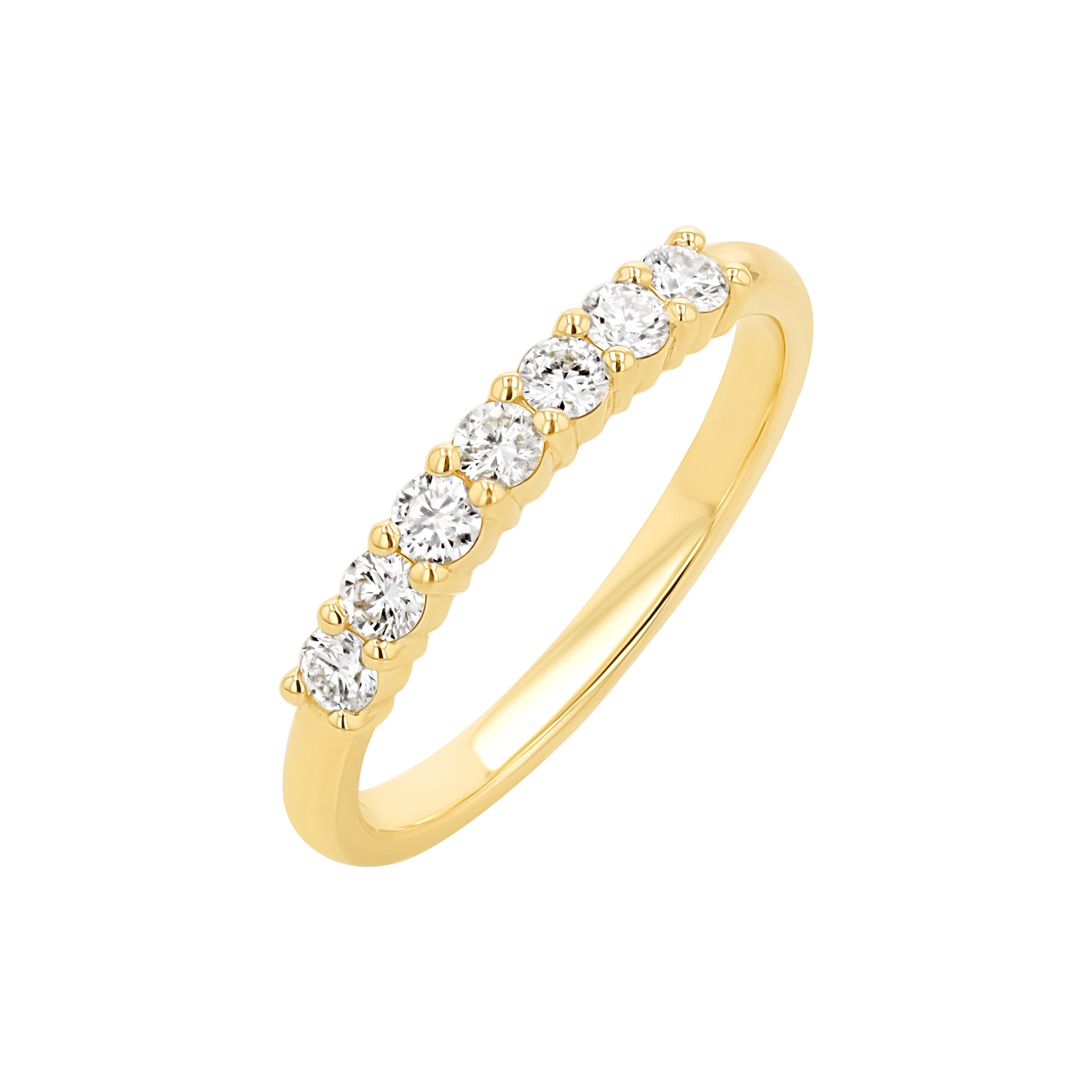 This half eternity band design is nothing short of perfection. A stunning 14K Solid Gold ring featuring seven sparkling diamonds, of approximately 0.35 carats, beautifully prong set by hand by our master setters. An ideal wedding or anniversary band or a dose of major sparkle to any ring stack, you will never tire of all the ways to wear this beauty.