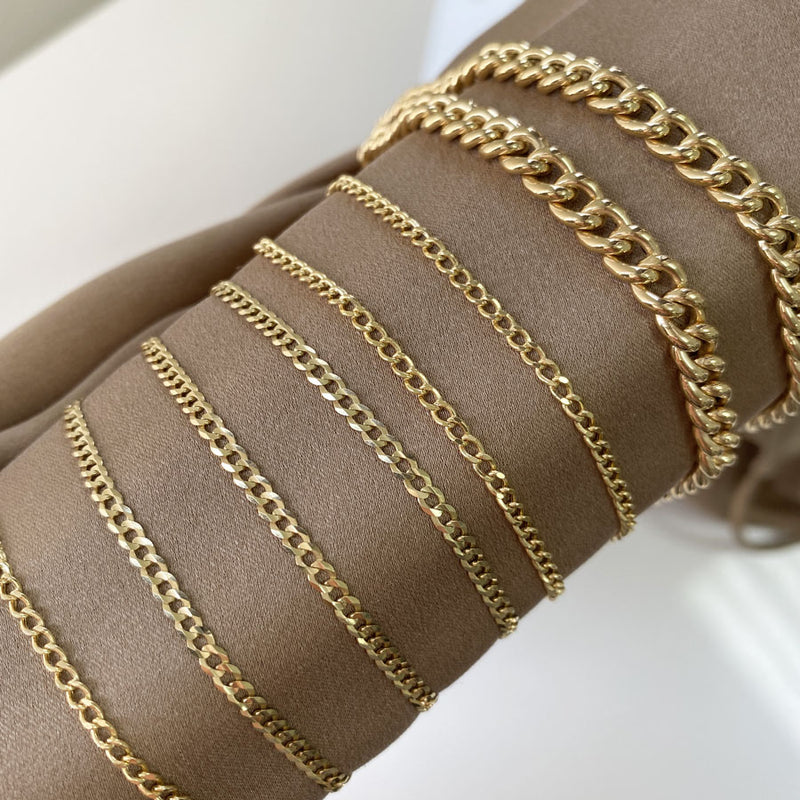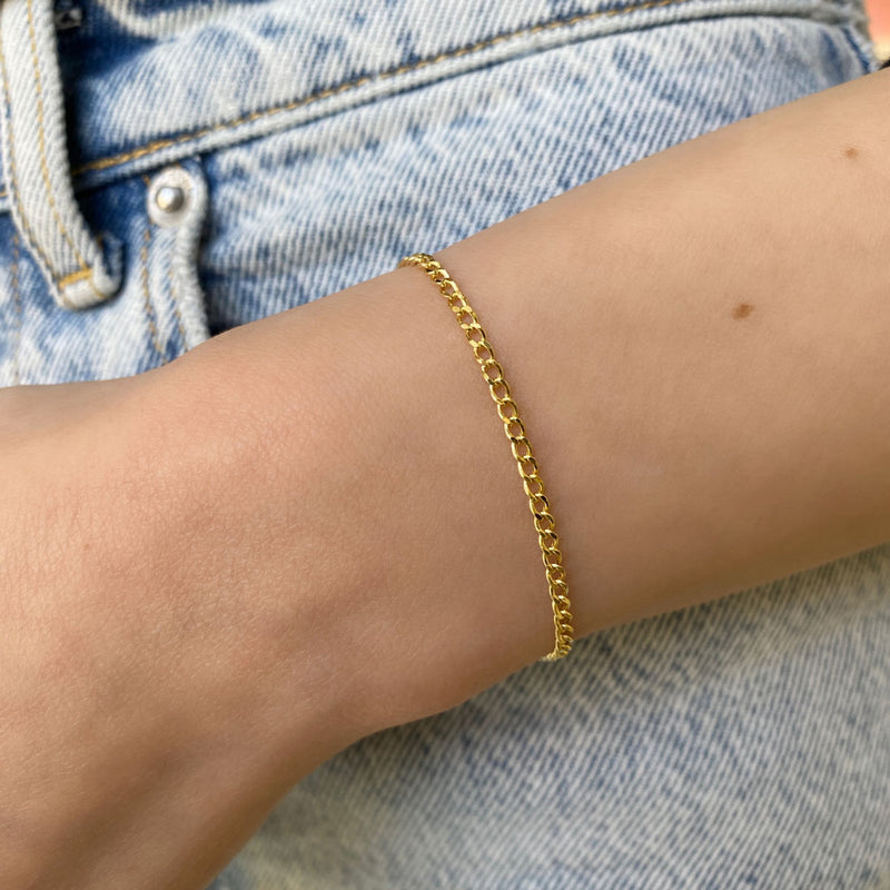Our 14K Dainty Cuban Link Chain Bracelet is a must have staple for your layer refresh! Delicate, timeless and above all so on trend. Made from 2.3mm 14K gold links and assembled perfectly with a lobster lock closure. Wear it solo or pair it with a diamond solitaire bracelet or better yet a diamond tennis bracelet for a quick refresh on your wrist game.