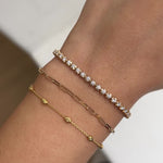 This exquisite piece of jewelry is THE forever piece that you have always dreamed of.  Handcrafted in 14K Solid Gold featuring 1.20-1.40cts of diamonds adorned in a beautiful bezel set to create endless sparkle all the way around your wrist. Clasped with a ultra chic security closure, each diamond hand-set by our master diamond setters to ensure the highest quality. Perfect alone or stacked with other Baby Gold favorites.