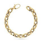 Our Chunky Sculptured Link Chain Bracelet, is crafted in 14K Gold for a bold, modern feel. Each oversized hollow link is flawlessly textured in a sculpted design to catch the light with an organic shimmer. Carved links are connected into one another to create a bold look without a massive weight.  Perfect for stacking or wearing solo, it’s the statement piece you didn’t know you needed, but won’t want to take off.