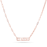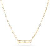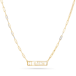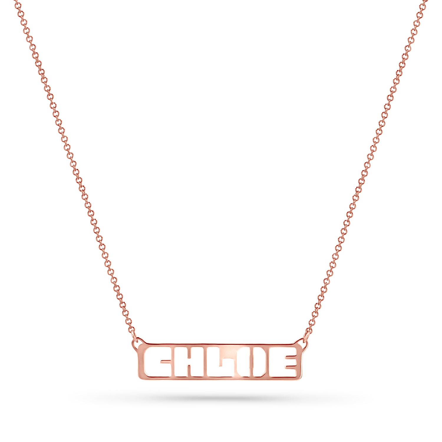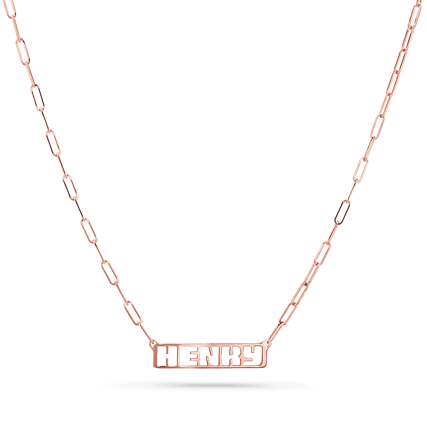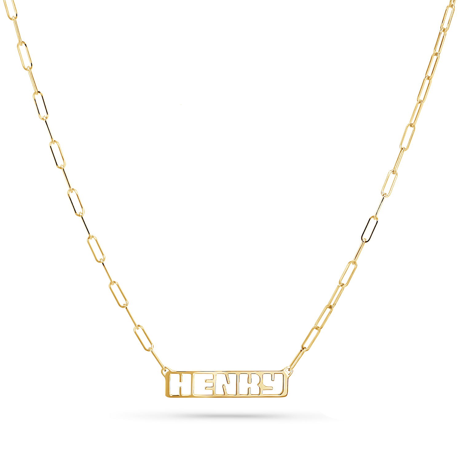 Introducing the Customizable Cut-Out Name Necklace, featuring a bold letter design on our your choice of chain. For a more traditional and minimal look choose our Cable Chain and for an elevated look pair it with our sleek Dainty Paper Clip Chain. Each name is drawn out and then cut-out in solid 14K gold plates using state of the art Laser cutting machinery with precision. This bracelet is sure to be a favorite due to its unique font style. The design was inspired by our Puff Letter collection and made with functionality and beauty in mind.