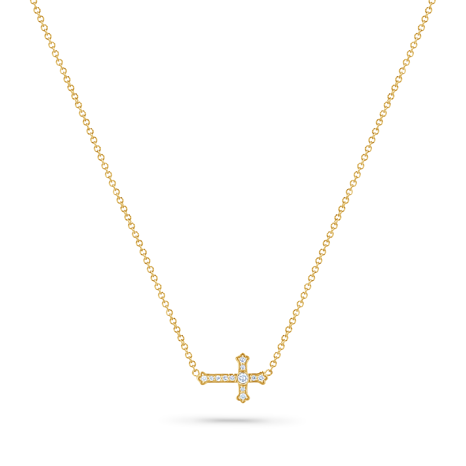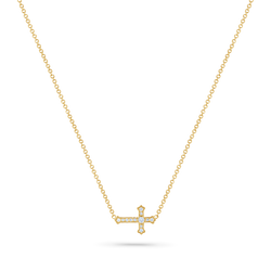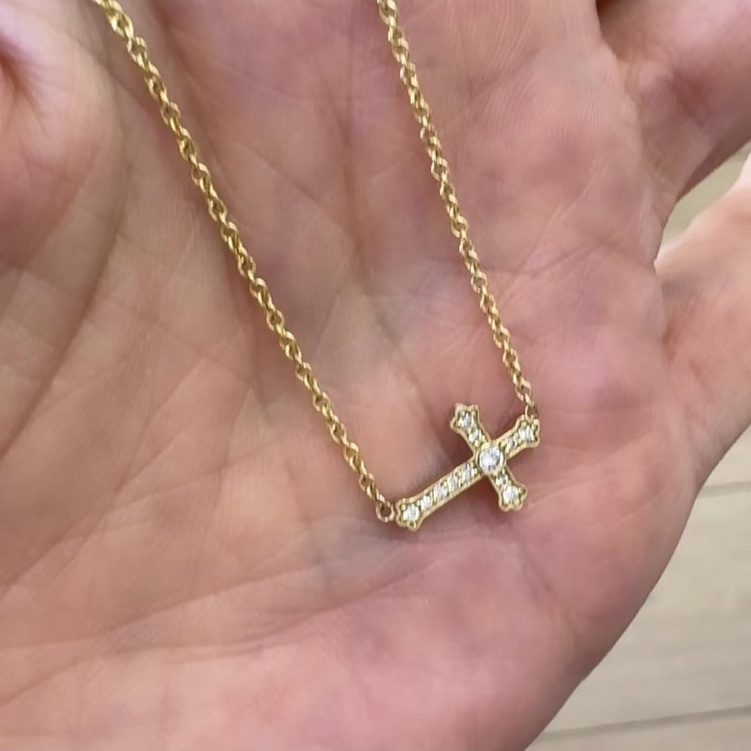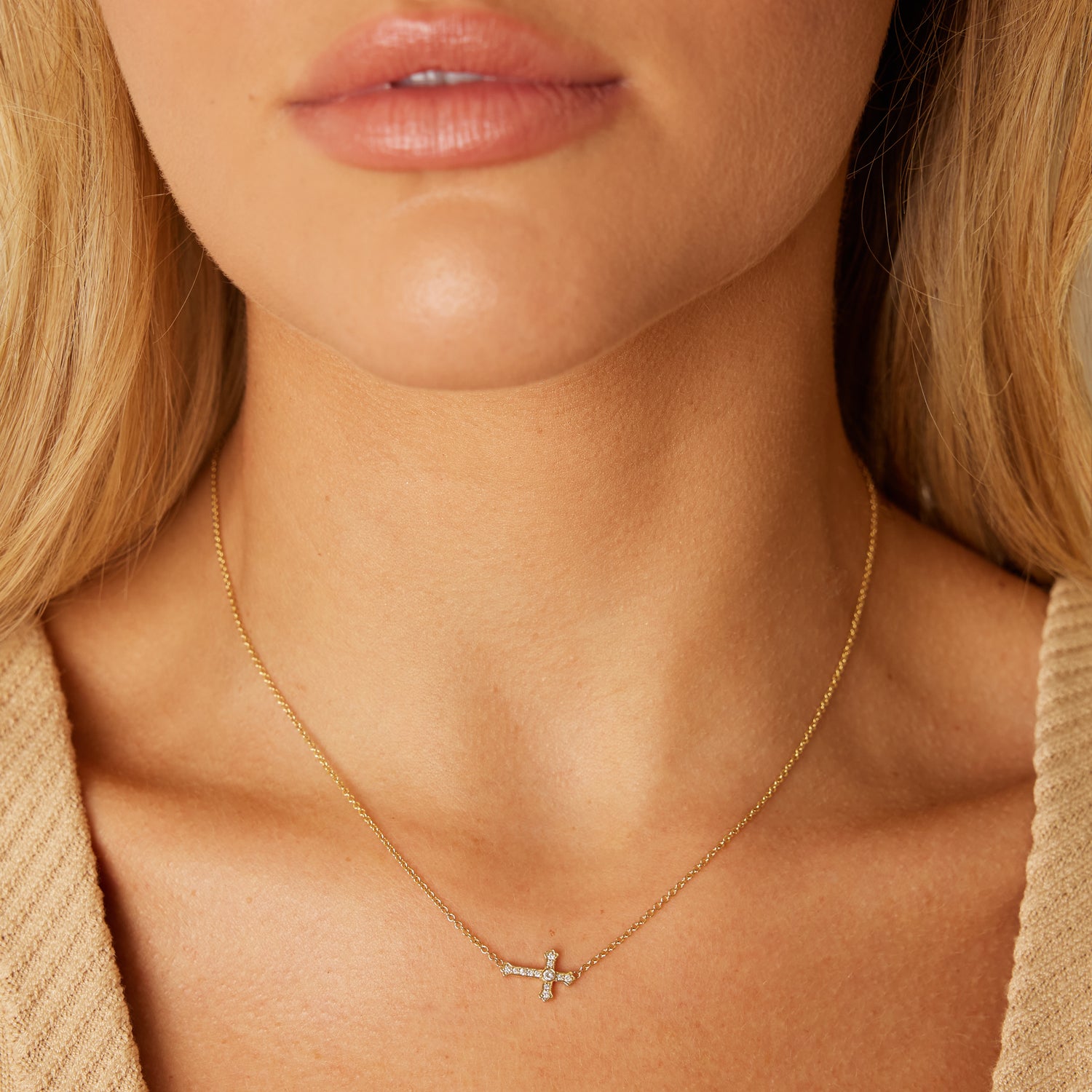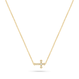 A new way to wear a timeless symbol, our Diamond Sideways Cross Necklace is masterfully crafted from 14K Gold. A perfect mix of simplicity and shine and set with shimmering diamonds, it adds just the right amount of sparkle, making it a versatile piece you'll never want to take off. Whether you wear it solo for a minimalist vibe or layer it with your favorite chains, this necklace brings a touch of elegance and meaning to your everyday style.
