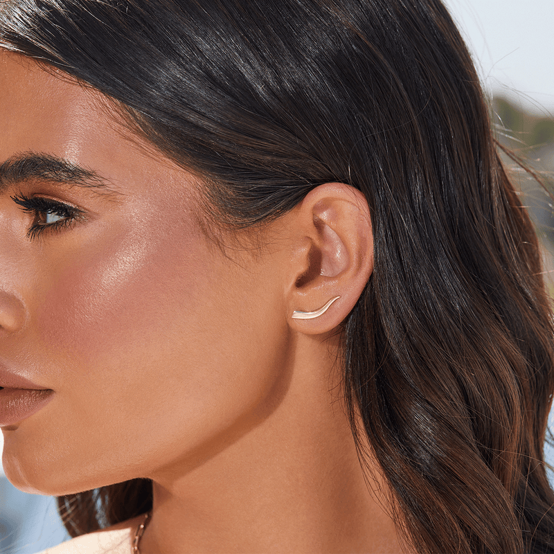 Our new super sleek 14K Gold Flame Crawler ascends the earlobe in a gentle flattering curve.  Finally, a piece that acts as an ear stack in and of itself and has fun edgy vibe that you can dress up or down!