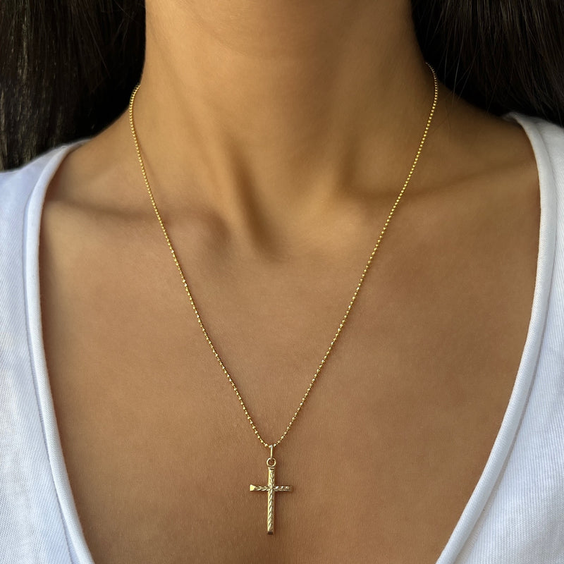 A truly modern rendition of this meaningful symbol handcrafted with a Herringbone Diamond Cut for a spiritual sparkle.  Whether chosen for you or as a gift to a loved one, we know our Herringbone Cross Charm will serve as a beautiful reminder of what's important to its wearer. Pairs with most of our dainty Babygold chains!