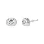 The perfect first pair of fancy earrings for any little one's collection, our Venus Diamond Stud Earrings are a unique and modern take on classic diamond studs. The solid Gold beanlike shape around the diamonds are flawlessly polished to give these studs a bold and refined feel.  Available in Diamond or Emerald center stone options.