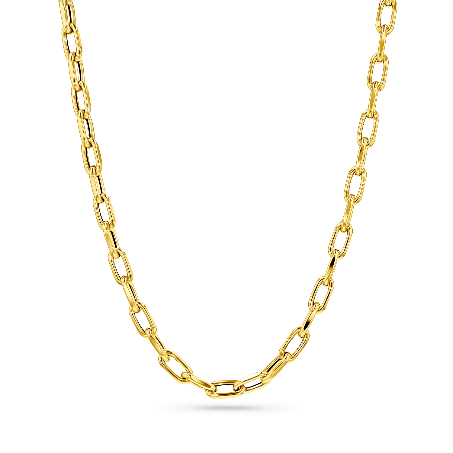 Meet our 14K La Brea Chain Necklace, an effortless balance between sleek and a major statement. Featuring softly curved hollow rectangular links, this chain is the definition of modern minimalism with a touch of edge. Lightweight yet substantial, it sits beautifully on the neckline, ready to be your everyday go-to or the perfect layering base. Designed to shine solo or stack with your favorites, this piece is a classic in the making, crafted to move with you, wherever your day takes you.