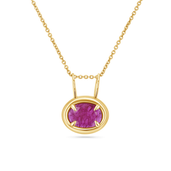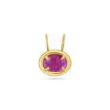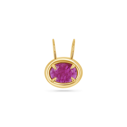 A refined statement in vivid hues, the Oval Slider Rustic Ruby Charm is a minimal modern with major impact. This charm features a vibrant, oval-cut ruby, held securely in a sleek four-prong setting, designed to highlight the stone’s natural inclusions and beauty. The deep magenta color plays beautifully against the polished 14K gold frame, creating a perfect balance of warmth and elegance. Whether styled alone on a fine chain or mixed into a layered look with other pendants, this charm adds a bold pop of color that feels both luxurious and understated. A modern heirloom you will reach for again and again.