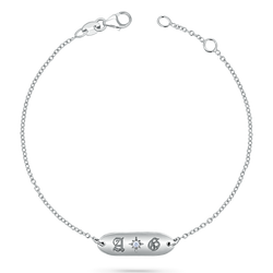 Our Best selling Oval Starset Initial Charm now has a bracelet to match! Our 14K Gold Oval Starset Initial Bracelet is as personal as it is timeless. it allows you to engrave your favorite initials and keep them by your side all day. Each ID bracelet gets hand set with a Starset Diamond in the center. Featuring a sleek, polished bar fixed securely on our cable chain, it’s perfect for layering or wearing solo.