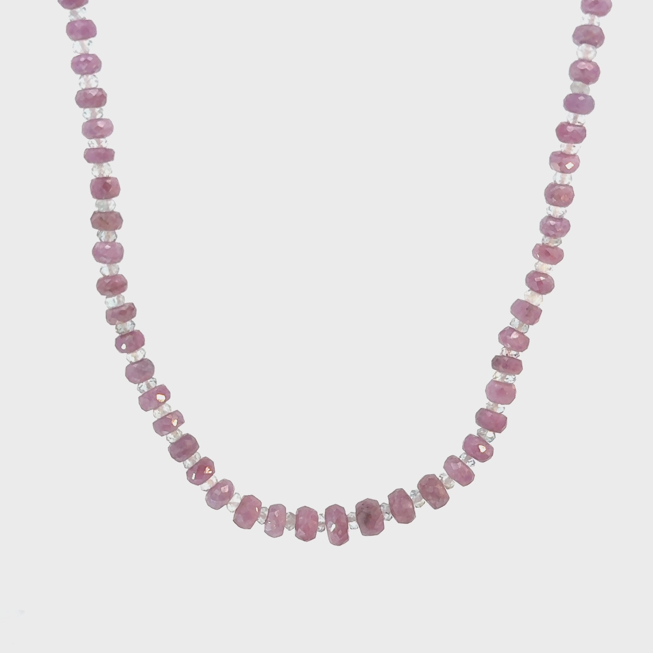 Pink Sapphire & Aquamarine Beaded Strand Necklace
