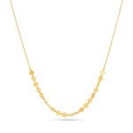 The 14K Round Disc Strand Necklace brings effortless sophistication to your everyday style. A delicate sequence of polished gold discs creates a subtle yet captivating shimmer. Lightweight and versatile, this necklace drapes beautifully on the neckline, whether worn solo for a minimalist look or layered with other favorites. A timeless design with just the right amount of shine.