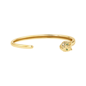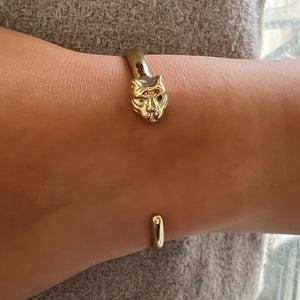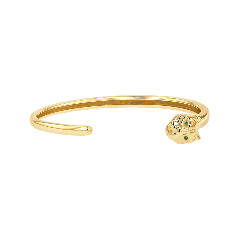 From our Year of the Tiger Collection this gorgeous wrap around Tiger cuff is sure to make heads turn and your wrist stack unforgettable for years to come. Celebrating the Year of The Tiger, this cuff symbolizes power, strength and boldness. Its Emerald eyes are fierce and elegantly set giving off the perfect hint of color. This cuff pairs perfectly with and chain bracelet or can be worn alone for an effortless statement piece.