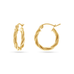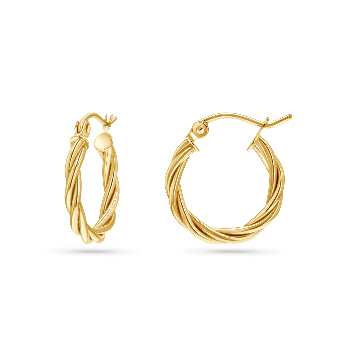 Our 14K Gold Twist Hoops will stand the test of time. Perfectly wrapped strands blend into a texture that catches the light with every turn of your head. Not too chunky, not too minimal that in–between size that feels special but still effortless. Lightweight and made for all-day wear, they are cool girl chic while still giving you that classic hoop moment. Wear them solo for a clean, glowy look or stack them with studs and huggies when you’re in your layered-up era.