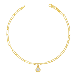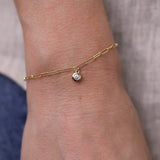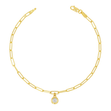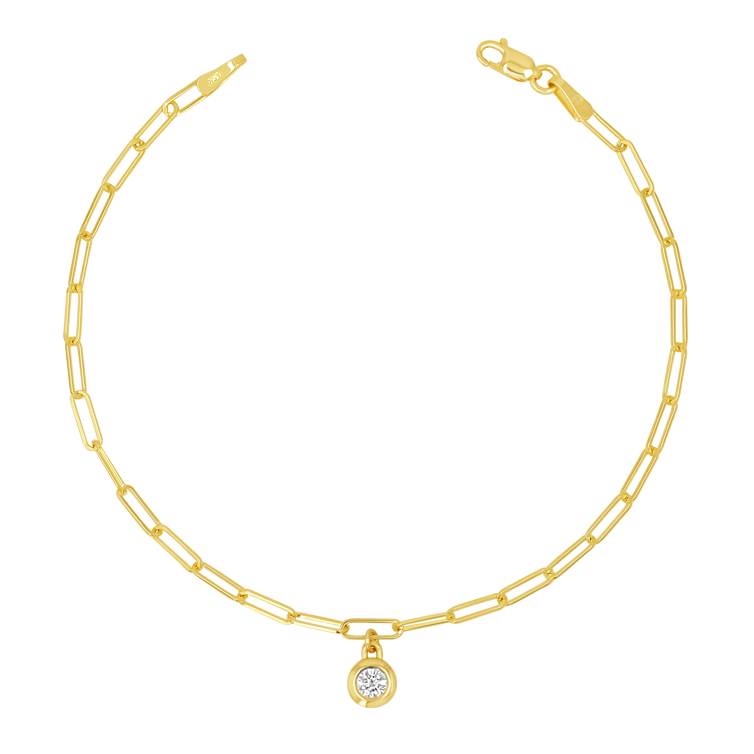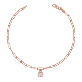 Introducing our Wire Paper Clip Diamond Bezel Bracelet, featuring interlocking paper clip links, each meticulously crafted in 14K Gold for a sleek and polished look. Adding a touch of major chic to the paperclip link we adorned it with a petite diamond bezel giving it a elevated twist that delicately enhances the overall radiance of the piece AND your bracelet stack. Pairs beautifully with the Wire Paper Clip Diamond Bezel Necklace. Stack away!