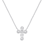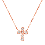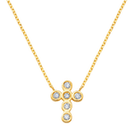 The handcrafted 14K Diamond Bezel Cross Necklace is hand set with approximately 0.10cts of diamonds. This cherished symbol hangs vertically from a delicate chain and can be kept close to your heart at all times.