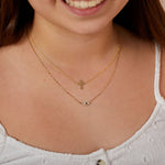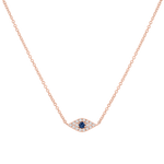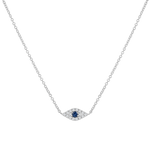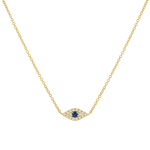 The 14k Pave Diamond Evil Eye Necklace is handset with a 0.06ct blue sapphire and 0.07cts of diamonds. Wear this dainty, sophisticated piece with ease daily.