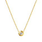 The handcrafted 14K gold Step Bezel Solitaire Necklace is hand set with approximately 0.07ct diamond or the gem of your choice. Whether it's just a favorite gem, your birthstone, or the birthstone of someone you love, this is bound to be a special piece in your collection.